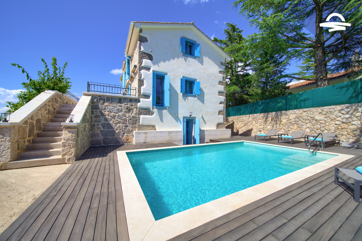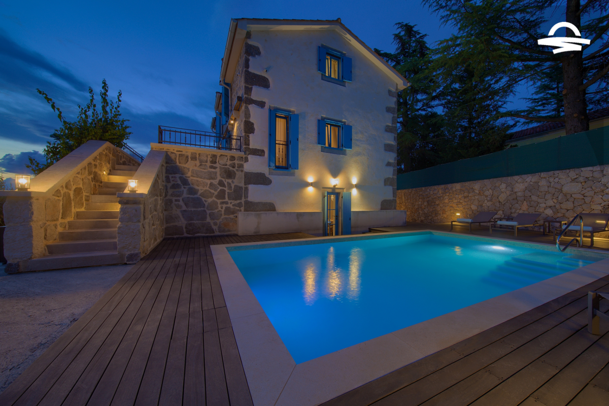 Die Insel Krk ist bekannt für ihre Steinvillen mit Pool, allerdings gibt es auf der Insel nur wenige authentisch renovierte Häuser. Das alte Steinhaus, das in dieser wunderschönen Villa Ive restauriert wurde, stammt aus dem Jahr 1939.Villa Ive verfügt über wunderschön eingerichtete Zimmer für 8 Personen. Das Haus selbst befindet sich im malerischen, hügeligen Ort Vrh, nur 4 km von der Stadt Krk entfernt und bietet viel Ausstattung und Luxus. Im großzügigen Innenhof befindet sich ein beheizter Pool von 28 m2 mit Salzwasser, einer Gegenstromanlage und...