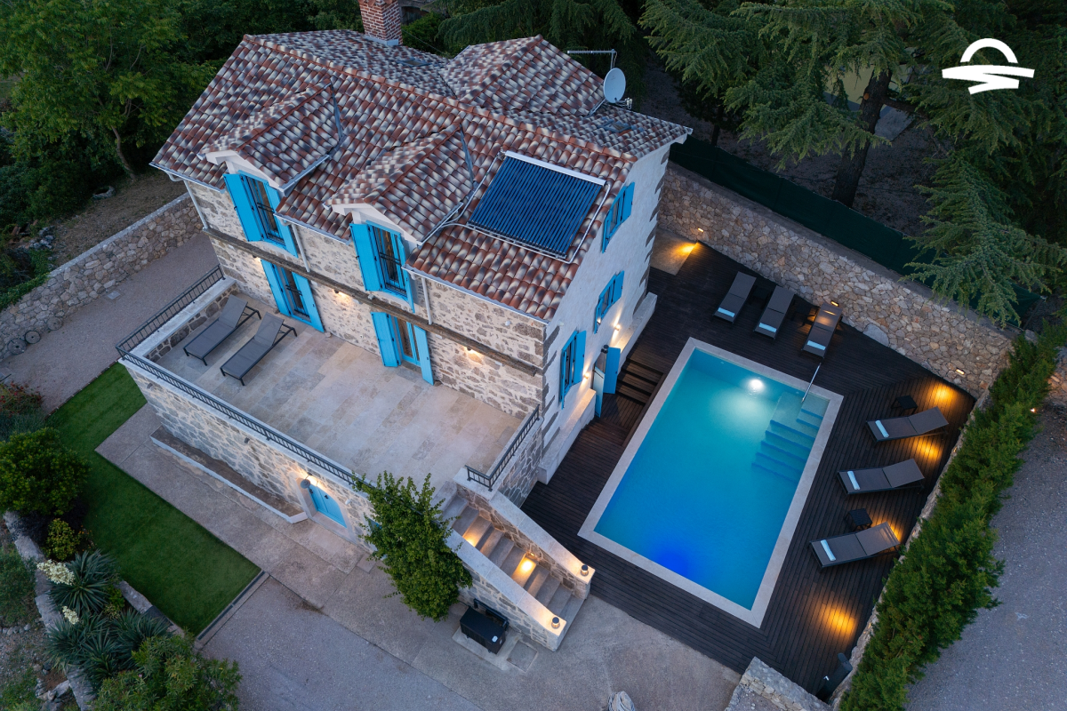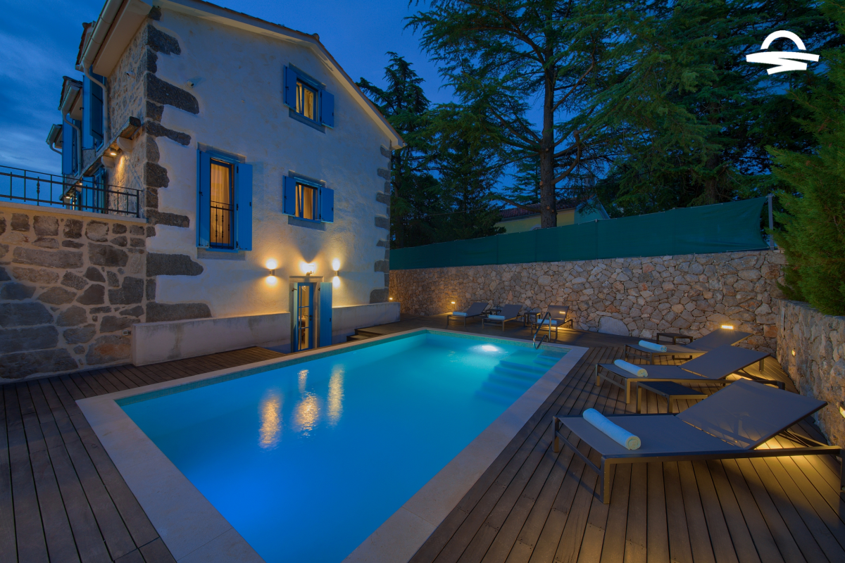 The island of Krk is known for its stone villas with a pool, but there are only a few authentically renovated houses on the island. The old stone house that was restored in this beautiful villa Ive dates back to 1939.Villa Ive has beautifully furnished rooms for 8 people. The house itself is located in the picturesque, hilly village of Vrh, only 4 km from the town of Krk and offers a lot of equipment and luxury. In the spacious courtyard is a heated pool of 28 m2 with salt water, a counter-current swimming system and a wooden sun terrace with an outdoor shower and...